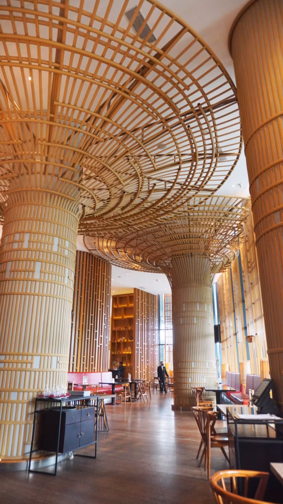 Indulge in delicious culinary delights amidst the charming atmosphere of Mandeh Restaurant, located within the prestigious JHL Hotel in Tangerang City, Indonesia. Our unique interior features virobamboo, an innovative material made from bamboo, cut and installed vertically, creating a stunning aesthetic that complements your dining experience. Immerse yourself in a fusion of flavors while surrounded by the natural elegance of virobamboo at Mandeh Restaurant.